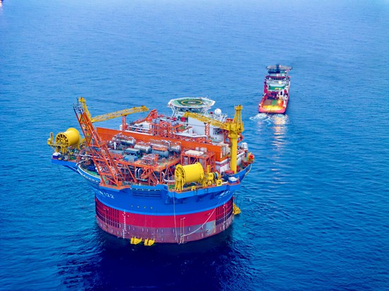 亚洲首艘圆筒型浮式生产储卸油装置“海葵一号”。受访者供图